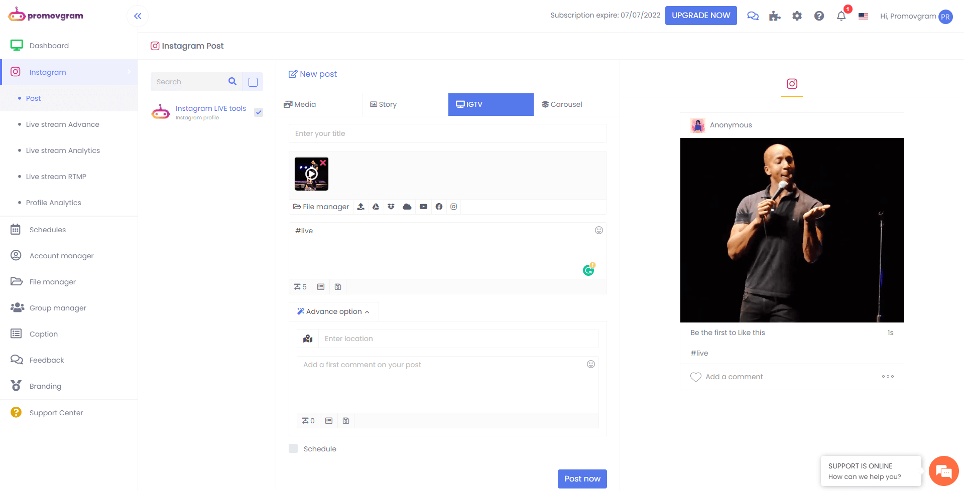 Upload and schedule any pre-recorded videos as live on your Instagram Live stream